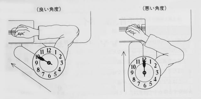 ・右腕の肘は机にのせてはいけません。